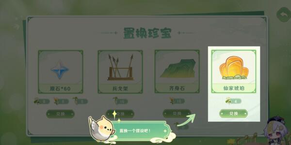 3、在「置换珍宝」兑换的场景摆设在兑换成功后会出现在活动场景中,点击可触发趣闻事件。