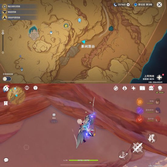 一号宝箱,从神像飞下去,在中间突出平台往下飞一点,也可以飞到大米途中位置然后慢慢往下降,只要靠近宝箱三十米就可以现实宝箱图标了。