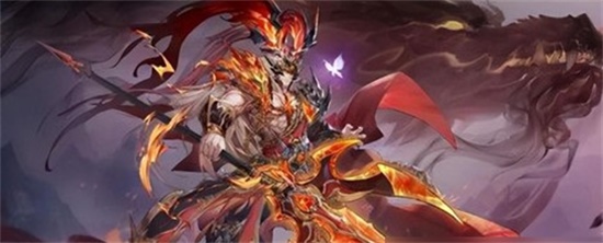2、吕布身穿火焰战甲,后面便是一对喷火的翅膀,现象上面还是比较炫酷的。
