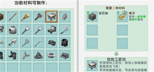 2、接着使用4个岩石块、4个绳子,来合成工匠台。