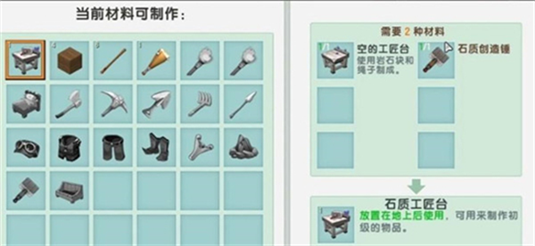 3、用将石质创造锤和空的工匠台,来合成石质工匠台。