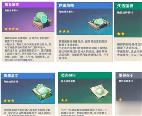 原神蕈兽不同形态掉落物是什么