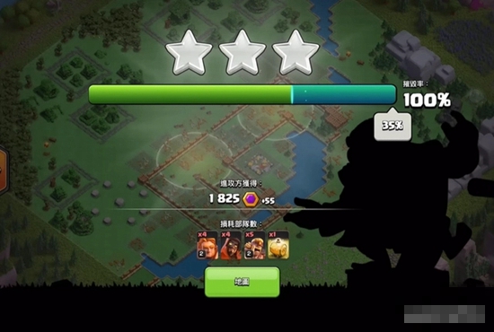 画面中的白色的区域是可以下兵的地方,刚开始允许部署部队的区域很小,不过随着摧毁率提高,部署区域会自动扩展。除了雷电法术之外,法术的有效时间可持续两次进攻,也就是说下一次进攻的时候这瓶法术仍然有效。