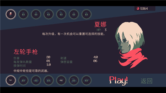 初始人物夏娜搭配蝙蝠枪跟火枪前期都很好用,黛蒙德血量成长优秀,被动技能还可以提高射速装弹,武器选择范围也很广泛。