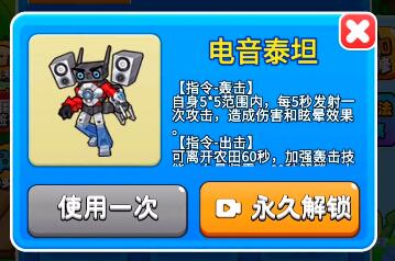 2、然后使用任意农夫,在普通模式击败一次马桶人,可以获得一个零件,集齐5个零件后点击按钮组装解锁即可