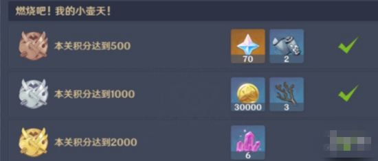 积分达到1000:30000摩拉+3某种武器突破材料(蓝色)