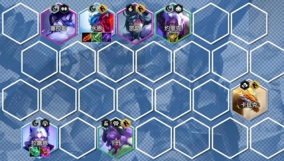 看经济与连胜情况选择3-5或4-1升7人口,开始大搜卡找到永恩2星与凯隐,开4死神+4夜幽羁绊,之后卡30-50金币追永恩与拉露恩3星。