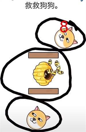 1.第一关画个口子围住狗狗,就可以过了。