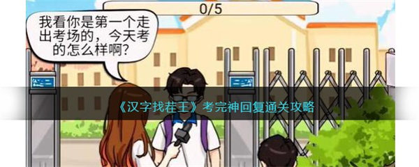 《汉字找茬王》是一款在抖音上非常火爆的文字闯关游戏。最新关卡"考完神回复"与高考有关,共有五个题目,玩家需要选择准确的回复来顺利过关。以下是详细的通关攻略: