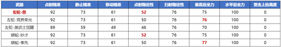 左轮-慈同蟒蛇-妙才数据一致,仅在载弹量上略有差异;同左轮-竞界荣光、蟒蛇-奉先相比,它具备更高的点射稳定性,在垂直后坐力上略逊于二者,可见几款副手强度相当。