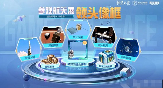 活动期间,完成指定任务收集航天展门票,解锁5大展区航天科普知识内容,可领取全新头像框:星河闪耀。