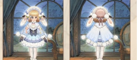 3、女装:以蓝色和白色为主,头上戴着至冬兔兔猫,裙边用来毛球作为点缀,十分具有冬日气息。