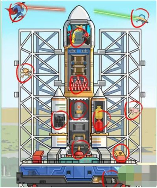 《疯狂梗传》是一款在抖音上非常火爆的休闲益智娱乐类闯关游戏。其中有一关是火箭发射,玩家需要利用透视镜查看火箭内部,找出火箭的隐患点。以下是都市小编为大家带来的《疯狂梗传》火箭发射找出火箭的隐患点通关攻略,请感兴趣的玩家仔细阅读。