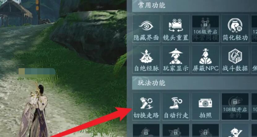 2、在玩法功能的下方就可以找到切换走路。