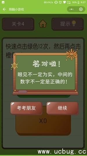 有没有发现按规定点击绿色到了12次,橙色按到了7次也还是不能过关。因为,显示的数字不是真的哦,显示12次其实只按了11次,所以要多按一次才能通关哦。大家可以一下一下慢慢数自己点了多少次,确保通关。
