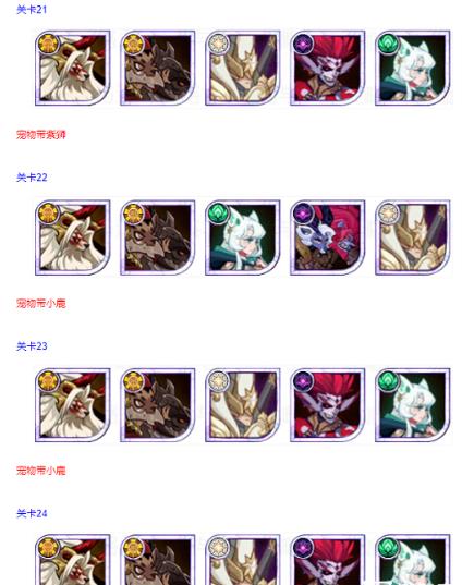 2、关卡21-关卡24,参考一下阵容,要是没打过的话,可以多试几次。
