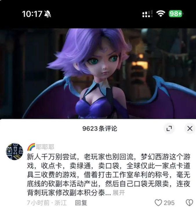 简而言之就是吐槽梦幻三种渠道收费,无限砍产出,还连夜修改副本积分物品和泰山施法动画背刺玩家。