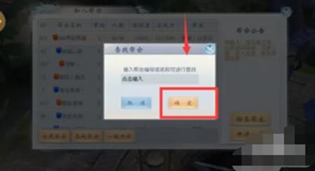 3.【查找帮会】的窗口,输入你要加入的帮会名称,点击确认。(可以直接找到那个帮会名称,直接点击申请。)