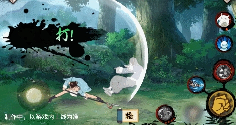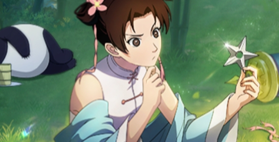 释放奥义后,峨眉天天展开卷轴,伴随着一阵烟雾,伙伴熊猫与珍藏的兵器出现,峨眉天天和熊猫配合,将兵器逐个射向对手,最后一起上前挥动拳头将对手打飞。奥义结束后可接技能。
