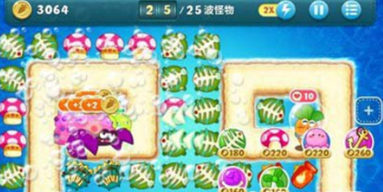 可用炮塔:鱼刺、深海蘑菇、章鱼、船锚炸弹、魔法球、风扇