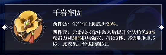 【千岩】2是目前唯一提高血量上限的套装,「妮露」的【净天水环】没有元素战技命中判定,所以不带四件套。其他的部件比较随意,带上副词条生命强化最多的散件就可以了。考虑到有小部分绽放是「妮露」触发的,也可以带【饰金】2或者【乐团】2提升一些精通。
