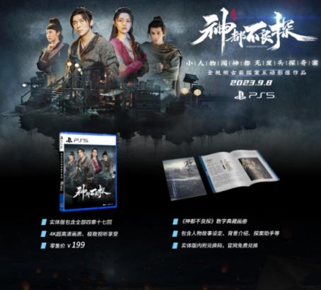 国内游戏发行商星游纪今日宣布,芸芸科技与留白影视合作开发的古装探案互动游戏《神都不良探(underdog detective)》的PS5国行实体版光盘今日正式上市,售价199元,全程支持4K超高清画质,包含全部四章十七回的完整内容。