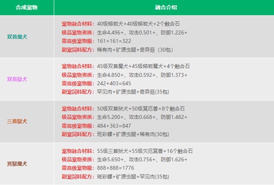 创造与魔法宠物融合表 创造与魔法宠物融合表大全