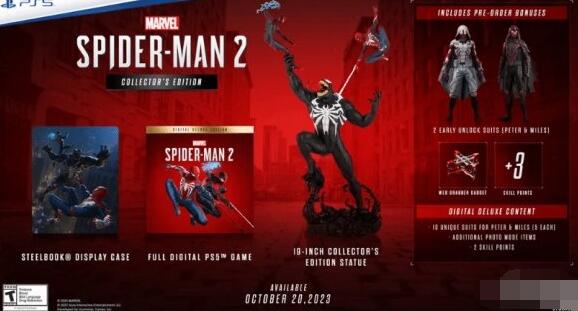 典藏版内容包括一张数字豪华版兑换券、19 英寸的双蛛战毒液雕像、特制铁盒。