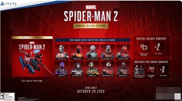 豪华版奖励10套独特套装:彼得 5 套和迈尔斯5套;额外的照片模式相框和贴纸,以及 2 个额外的技能点。