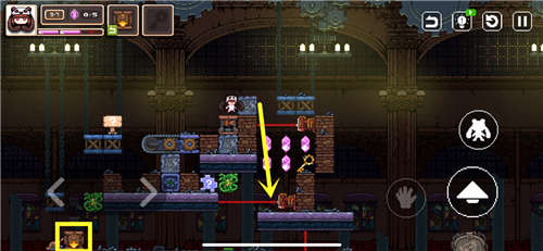 把标记箱子推到机关上关闭激光,收集宝石和钥匙并在图示位置留下两个幻象。开门进入门内世界。