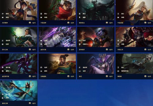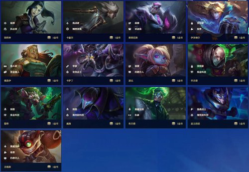 天罚弩神、不屈战神、钢铁领主、华彩剑姬、西斗之飒、虚空行者、麦林炮手、帝国之手、虚空掠夺者、无畏重炮、蛛后、青钢影、流浪之鳞。