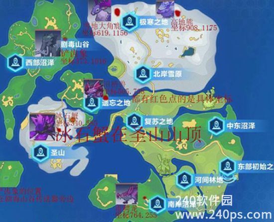 3.高地熊蛋:星历300年的原罪之岛刷新,在右上角这里的遗弃之地刷新,在这里的冰岛上。