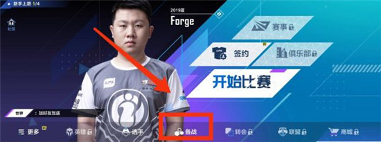 1.进入英雄联盟电竞经理,在游戏首页点击*下面选项中的“备战”,如下图所示: