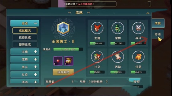 奇遇任务是主页的右下角,有个“生涯”,点开之后的界面的右侧就可以看到奇遇了,奇遇点开之后可以看到任务的页面了,一共是有一百多个任务,这些任务类似环岛任务,需要玩家对应着线索在法兰城线索去完成任务。