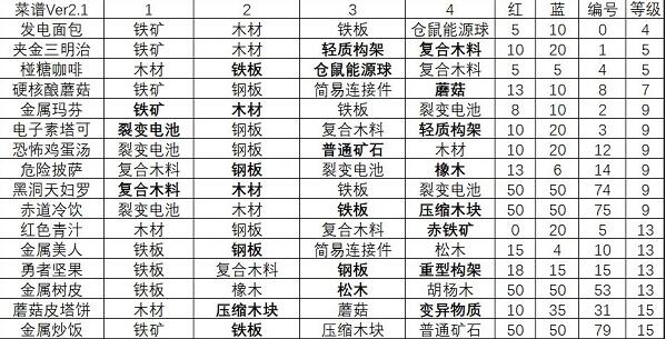 3.不需要知道编号的作用。等级的意义是【最少能做出此菜品的等级】。