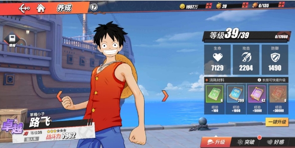 1、路飞的操作和培养难度都相对较小,但是在前期有着不错伤害,推荐新手玩家选择。