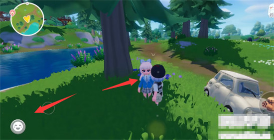 1、和好友到同一个小镇的同一个场景,然后点击左下角发表情。