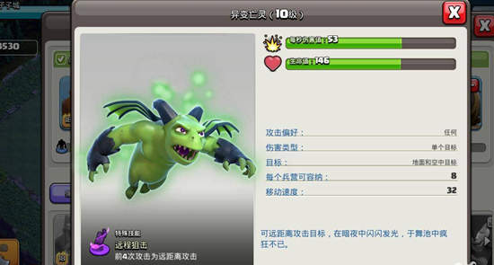 异变亡灵是建筑大师基地里面的部队,当建筑大师训练营等级达到4级即可解锁的兵种,这个兵种在对战中具有很强的人海进攻性!其特殊技能是前几次攻击为远距离攻击,次数随等级提升而提升,比如10级的异变亡灵就是前4次攻击为远距离攻击。如下图所示: