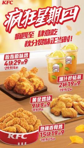 KFC疯狂星期四9.22优惠介绍 肯德基疯狂星期四9.22优惠介绍