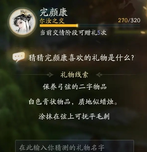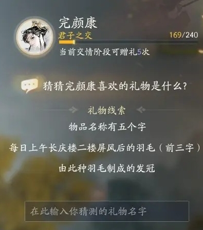 射雕手游完颜康喜欢的礼物有哪些?这个游戏已经开启公测了,游戏是由网易特别推出的,以射雕三部曲为背景,游戏内的npc也是非常多的,在我们给npc送礼物提升好感度的时候也是可以获取到不错的奖励,今天给大家带来的是完颜康喜欢什么礼物,下面就赶紧和小编一起来看看射雕手游完颜康送礼攻略吧。