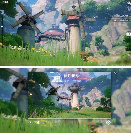 2、调转角度朝着后方的两个风车,按照下图的焦距参数进行设置拍摄即可。