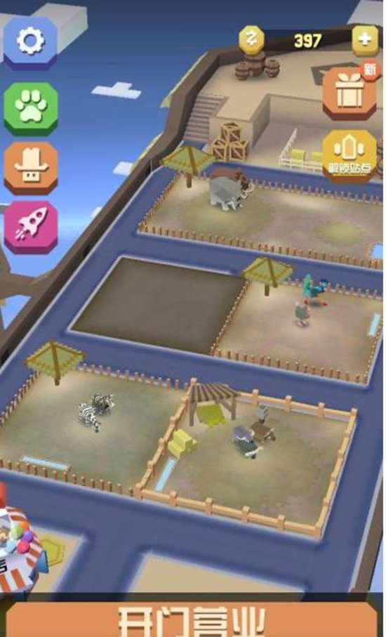 1、疯狂动物园每隔一段时间玩家进入游戏后可以进行开门营业的操作,通过售卖门票的方式获取金币。