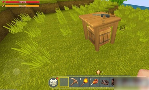 3、点击工作台,制作斧子需要3个木板,3个小木棒。材料够了之后,点击斧子制作即可