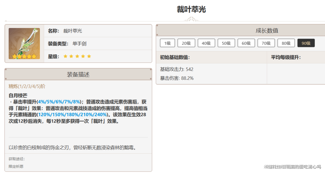 强度排序:有乐御簾切 静水流涌之辉 磐岩结绿 狼牙精五 裁叶萃光 辰砂之纺锤 黎明神剑 雾切之回光 狼牙(个人测会有偏差,实际情况按具体伤害来携带!!)