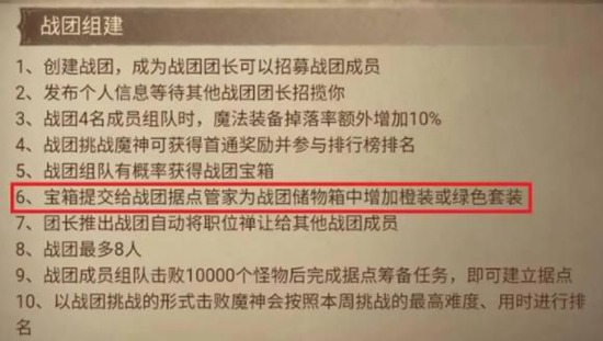2、将战团储物箱提交给战团据点管家可以为战团储物箱中增加橙装或绿色套装。