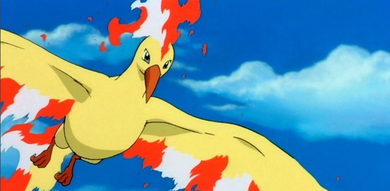 火焰鸟振翅即刻火星闪耀,有着令人都心神激荡的美丽感。在身上有伤口之后,火焰鸟会进入火山口的岩浆里,全身燃烧,治愈伤口。在春天来临时,火焰鸟向雪国迁徙,使寒冷的地方都能先一步进入春天。火焰鸟很少为宝可梦训练家们所见。