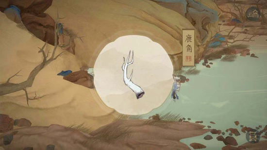 与鲶鱼仙对话后会获得物品鹿角,捡起鹿角,继续往前走。