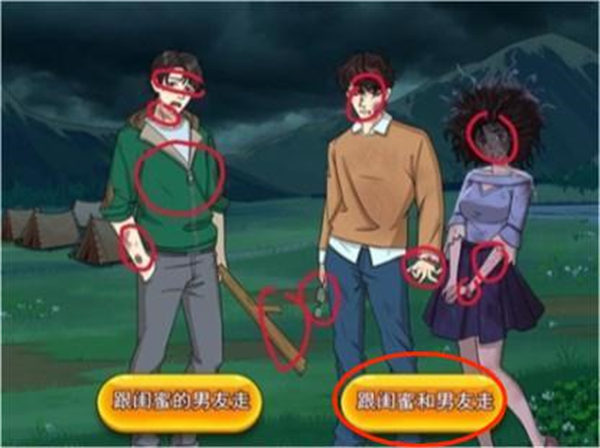 3. 最后,在场景异常之处,选择和闺蜜以及男友一起走。