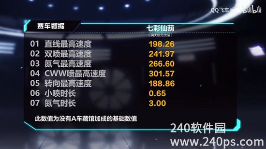 七彩仙葫的赛车特性实用,适合在赛道较短的竞速赛事中使用,起步30秒内,每秒自动增加显著的集气且基础最高速度有明显的加成,手感大大提升。