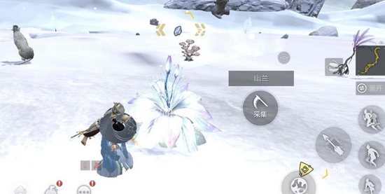 4.幽兰花在地图的任意地方都有机会看见,是白色的小花,边缘带有紫色的大花,采集起来还是比较容易的。